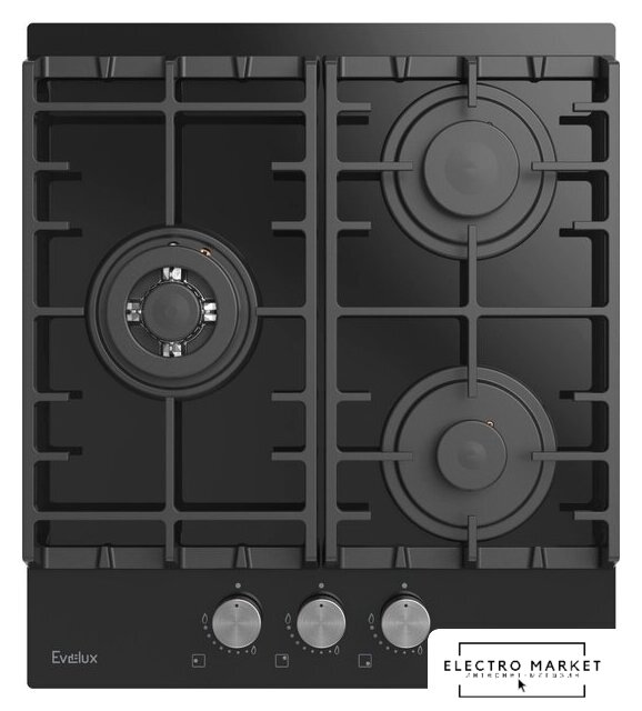 газовая на 3 конфорки, эмалированная сталь, мощность: 6180 Вт, автоматический электроподжиг, газ-контроль, решетки: чугун, независимая установка, размеры (ШхГ): 45.5x51 см