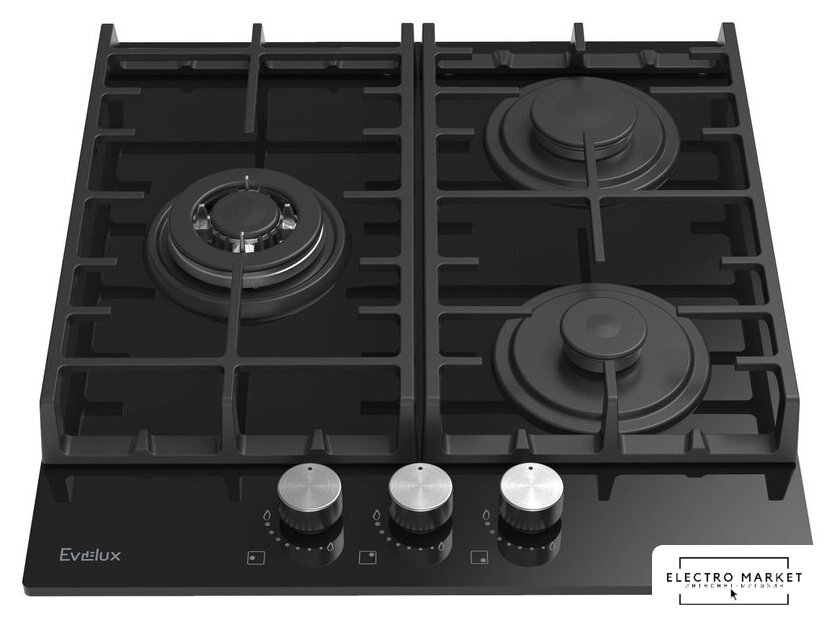 газовая на 4 конфорки, нержавеющая сталь, газ-контроль, решетки: чугун, независимая установка, размеры (ШхГ): 59x51 см