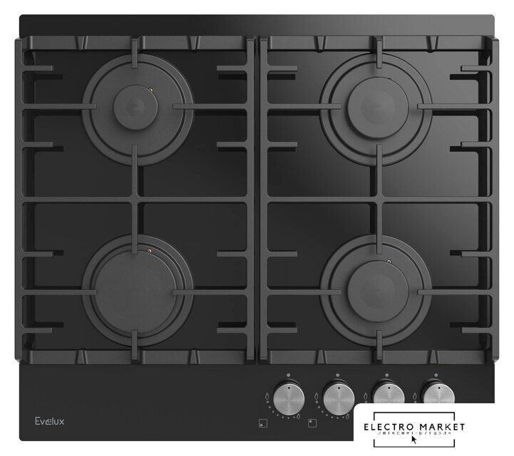 газовая на 4 конфорки, закаленное стекло, мощность: 8200 Вт, автоматический электроподжиг, газ-контроль, решетки: чугун, независимая установка, размеры (ШхГ): 58x52 см