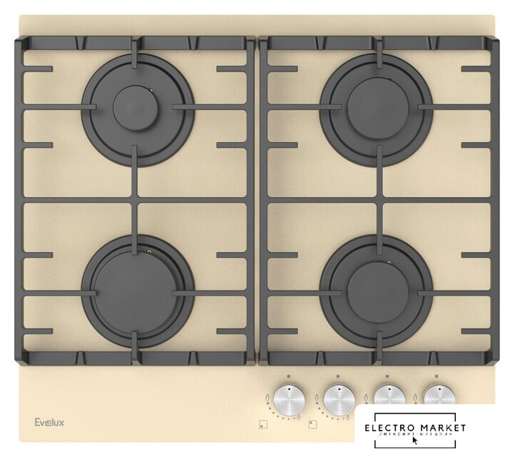 газовая на 4 конфорки, закаленное стекло, мощность: 7800 Вт, автоматический электроподжиг, газ-контроль, решетки: чугун, независимая установка, размеры (ШхГ): 60x51 см