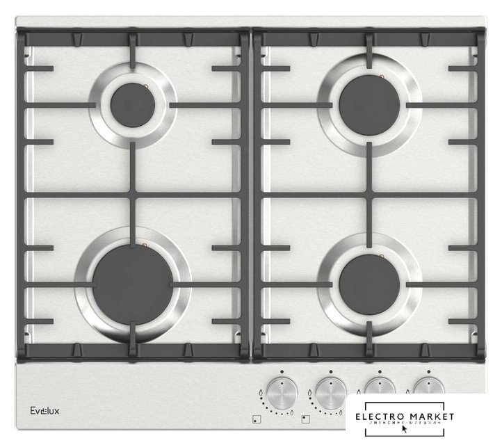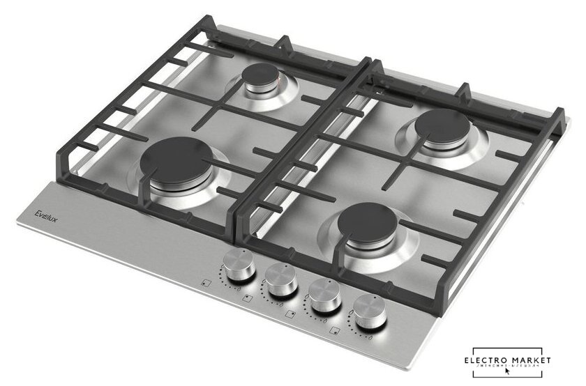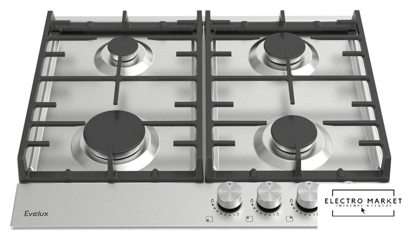 газовая на 4 конфорки, нержавеющая сталь, мощность: 7800 Вт, автоматический электроподжиг, газ-контроль, решетки: чугун, независимая установка, размеры (ШхГ): 58.5x50.5 см