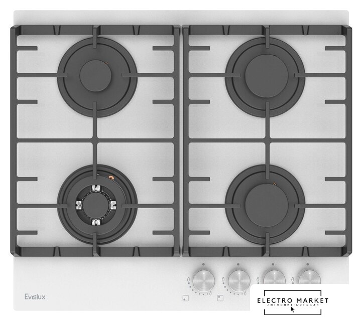 газовая на 4 конфорки, закаленное стекло, мощность: 7900 Вт, автоматический электроподжиг, газ-контроль, решетки: чугун, размеры (ШхГ): 60x51 см