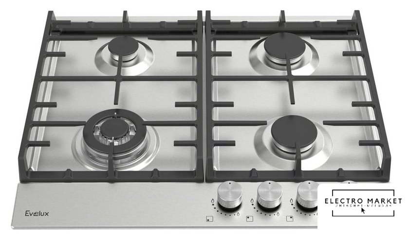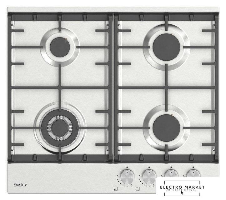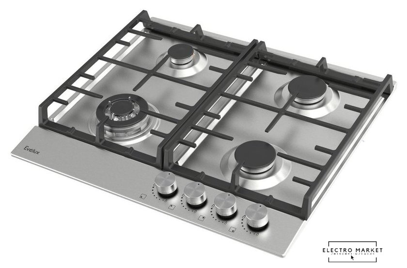 газовая на 4 конфорки, нержавеющая сталь, автоматический электроподжиг, газ-контроль, решетки: чугун, независимая установка, размеры (ШхГ): 60x51.5 см