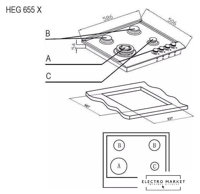 газовая на 4 конфорки, закаленное стекло, мощность: 6800 Вт, автоматический электроподжиг, газ-контроль, решетки: чугун, независимая установка, размеры (ШхГ): 59x51.5 см