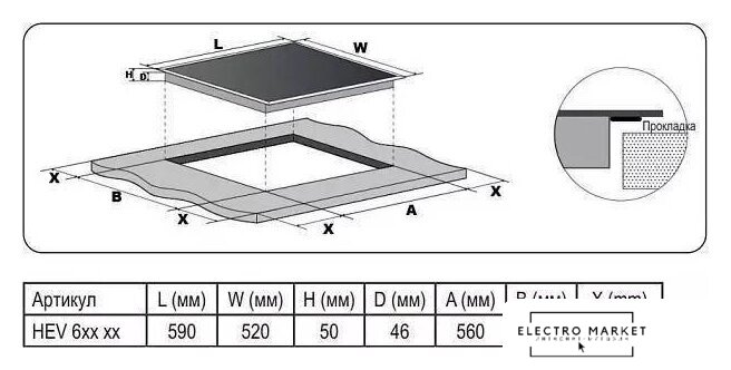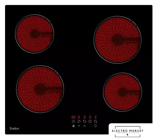 HiLight на 4 конфорки, cтеклокерамика, мощность: 6000 Вт, независимая установка, размеры (ШхГ): 59x52 см
