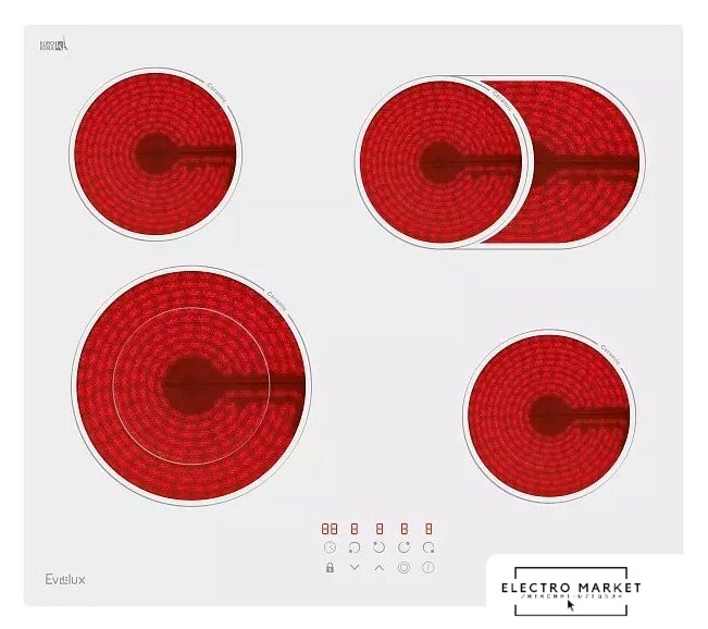 HiLight на 4 конфорки, cтеклокерамика, мощность: 6600 Вт, независимая установка, размеры (ШхГ): 59.2x52.2 см