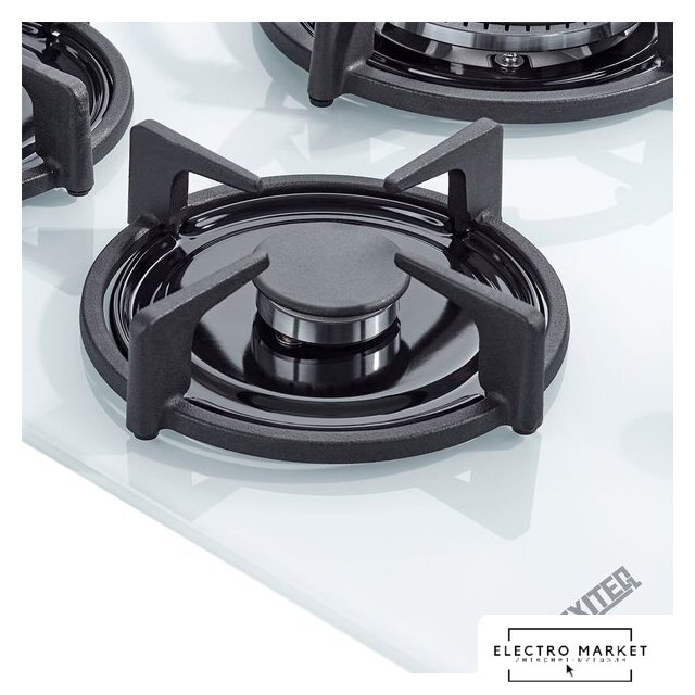 газовая на 4 конфорки, закаленное стекло, мощность: 7400 Вт, автоматический электроподжиг, газ-контроль, решетки: чугун