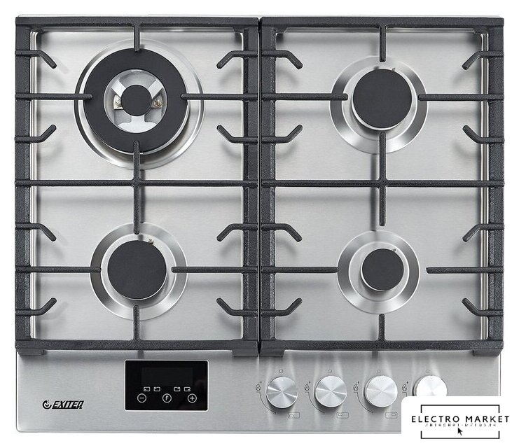 газовая на 4 конфорки, нержавеющая сталь, мощность: 7800 Вт, автоматический электроподжиг, газ-контроль, решетки: чугун, размеры (ШхГ): 59.5x51 см