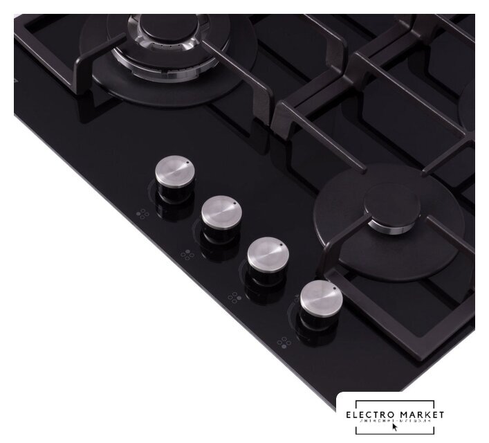 газовая на 4 конфорки, закаленное стекло, мощность: 8000 Вт, автоматический электроподжиг, газ-контроль, решетки: чугун, размеры (ШхГ): 61x52.5 см