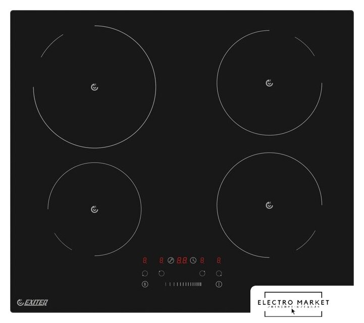 индукционная на 4 конфорки, cтеклокерамика, мощность: 7400 Вт, независимая установка, размеры (ШхГ): 59x52 см