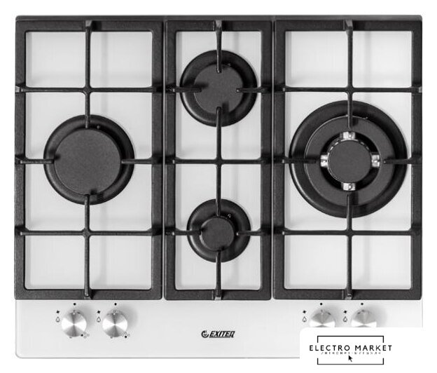 газовая на 4 конфорки, закаленное стекло, мощность: 9000 Вт, автоматический электроподжиг, газ-контроль, решетки: чугун, независимая установка, размеры (ШхГ): 58x50 см