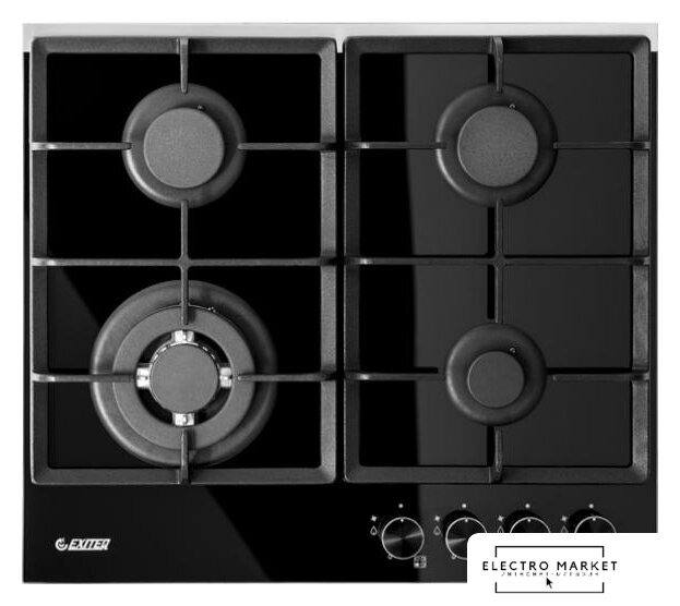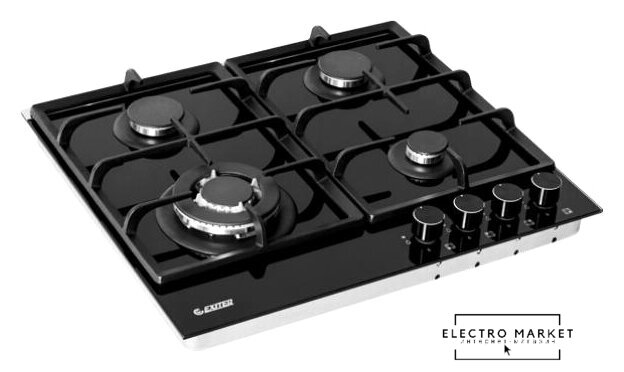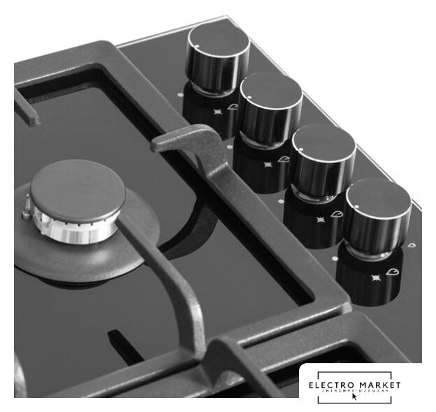газовая на 4 конфорки, закаленное стекло, мощность: 7000 Вт, автоматический электроподжиг, газ-контроль, решетки: чугун, независимая установка