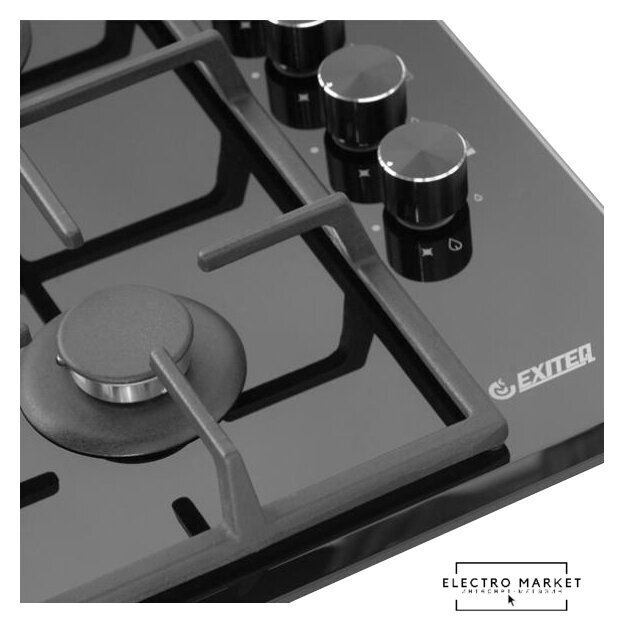 газовая на 4 конфорки, закаленное стекло, мощность: 7400 Вт, автоматический электроподжиг, газ-контроль, решетки: чугун, независимая установка, размеры (ШхГ): 59x52 см