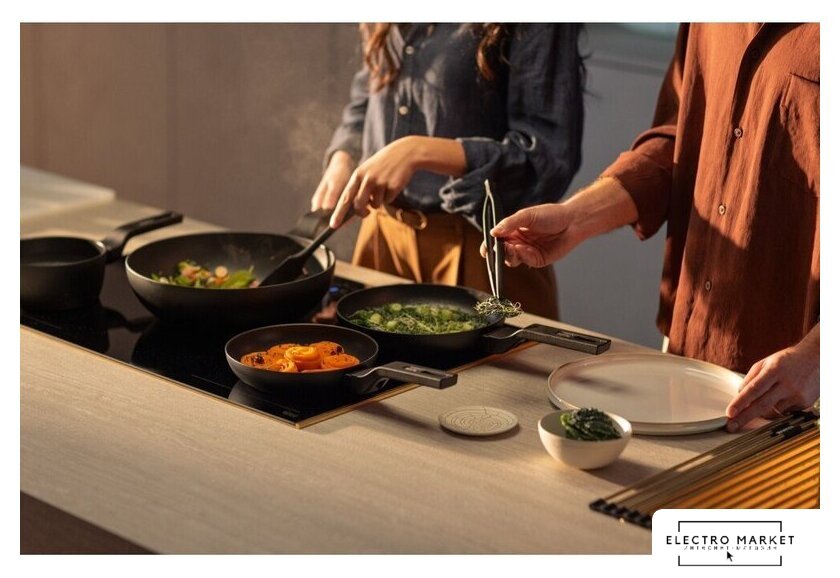 | Подробная информация о конфорках | Каждая из пяти индукционных зон имеет стандартную мощность 2.1 кВт и функцию Booster до 3.0 кВт. Центральная зона и боковые зоны поддерживают гибкое размещение посуды благодаря технологии Flex Pro. |