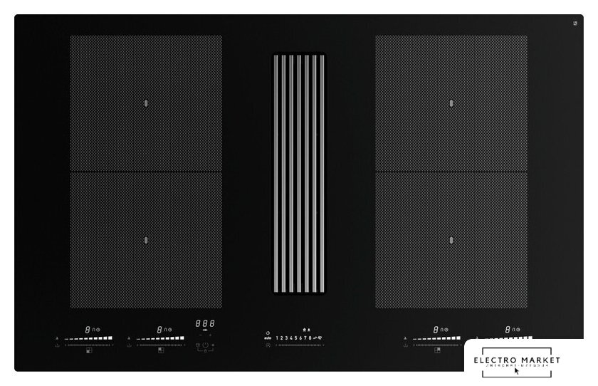 индукционная на 4 конфорки, cтеклокерамика, мощность: 7400 Вт, автоматика закипания, независимая установка, размеры (ШхГ): 83x51.5 см