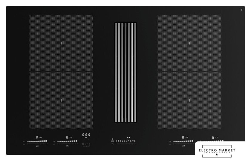 индукционная на 4 конфорки, cтеклокерамика, мощность: 7500 Вт, автоматика закипания, независимая установка, размеры (ШхГ): 80.6x52.6 см