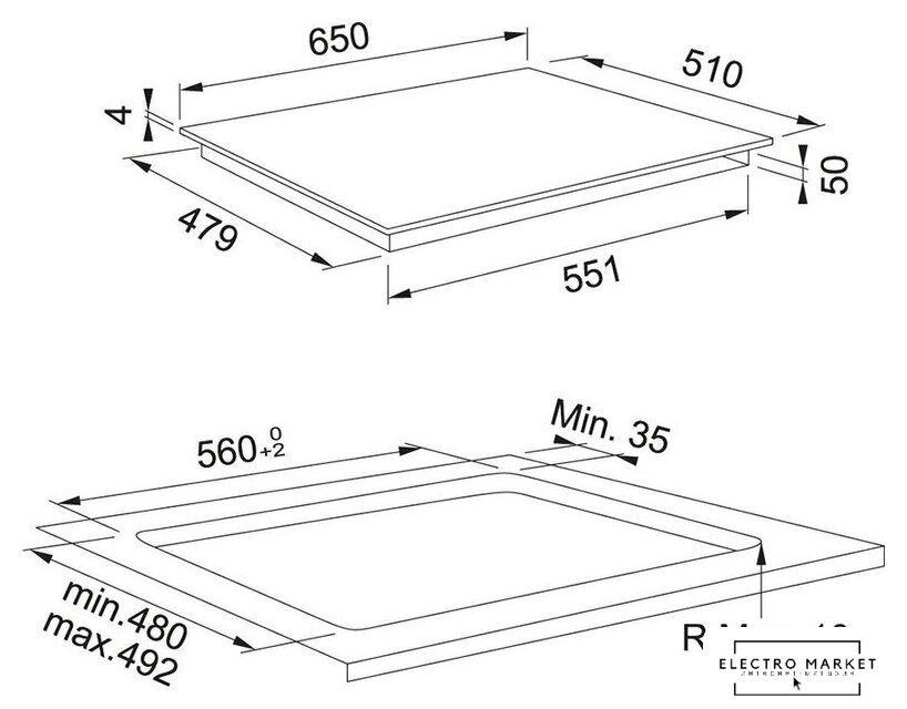 индукционная на 4 конфорки, cтеклокерамика, независимая установка, размеры (ШхГ): 59x51 см