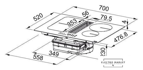 индукционная на 4 конфорки, cтеклокерамика, независимая установка, размеры (ШхГ): 83x51.5 см