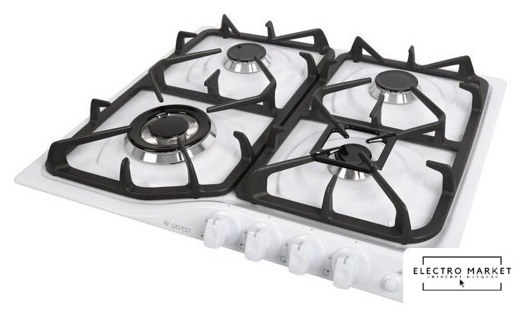 газовая на 4 конфорки, эмалированная сталь, мощность: 7500 Вт, решетки: эмалированная сталь, независимая установка, размеры (ШхГ): 60x52 см