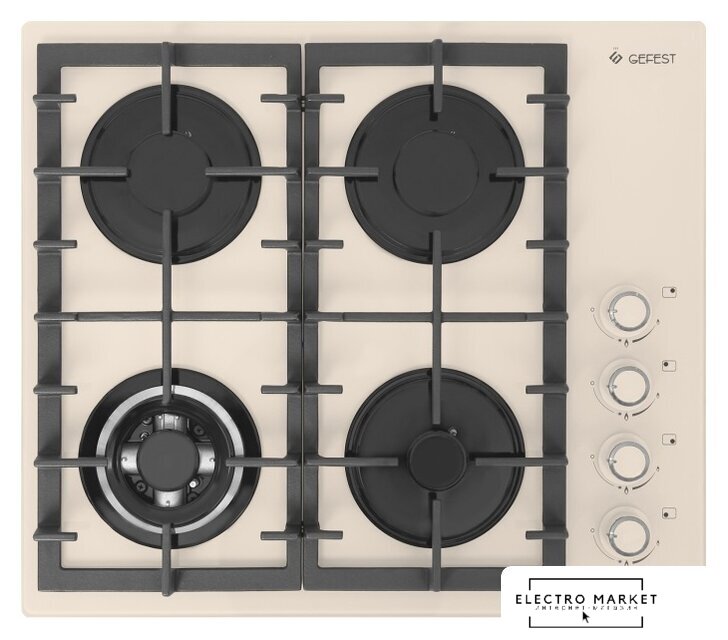 газовая на 4 конфорки, закаленное стекло, мощность: 8000 Вт, автоматический электроподжиг, газ-контроль, решетки: чугун, независимая установка, размеры (ШхГ): 58x50 см