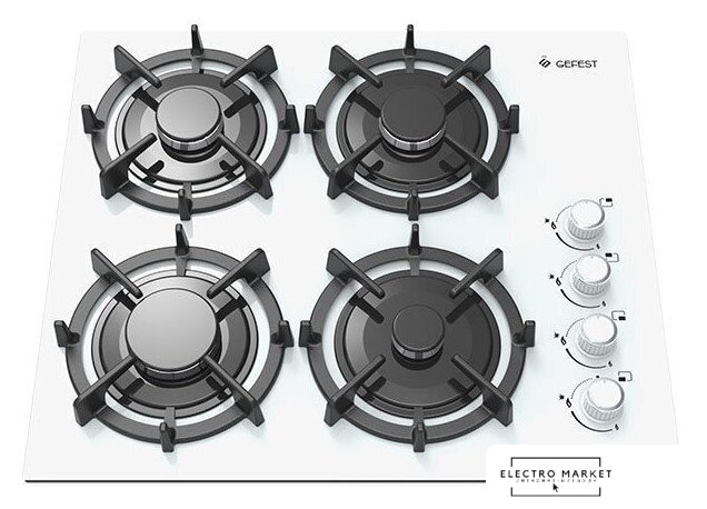газовая на 4 конфорки, закаленное стекло, мощность: 7200 Вт, автоматический электроподжиг, газ-контроль, решетки: чугун, независимая установка, размеры (ШхГ): 59x51.5 см