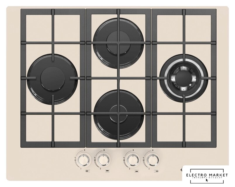 газовая на 4 конфорки, закаленное стекло, автоматический электроподжиг, газ-контроль, решетки: чугун, независимая установка, размеры (ШхГ): 67x52.5 см
