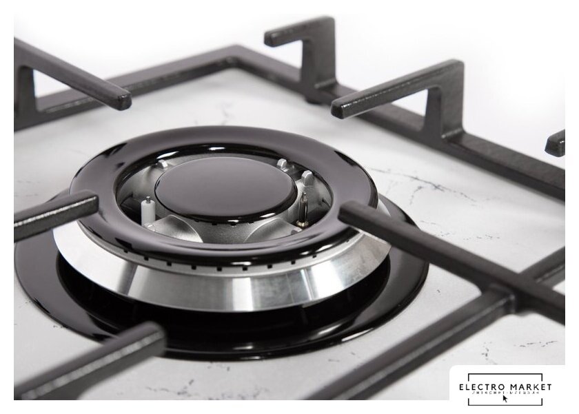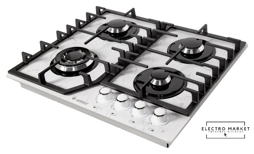 газовая на 4 конфорки, cтеклокерамика, мощность: 8500 Вт, автоматический электроподжиг, газ-контроль, решетки: чугун, независимая установка, размеры (ШхГ): 58x51 см