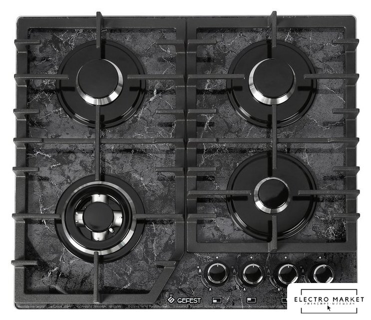 газовая на 4 конфорки, закаленное стекло, мощность: 7800 Вт, автоматический электроподжиг, газ-контроль, решетки: чугун, независимая установка, размеры (ШхГ): 60x51 см