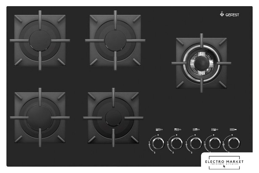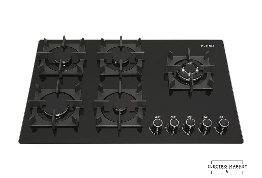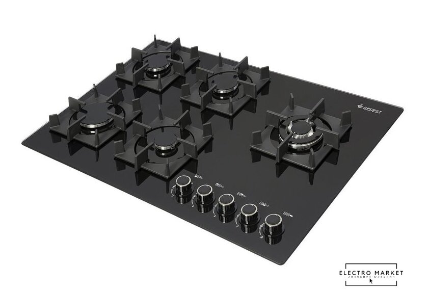 газовая на 5 конфорок, закаленное стекло, автоматический электроподжиг, газ-контроль, решетки: чугун, независимая установка, размеры (ШхГ): 80x52.5 см