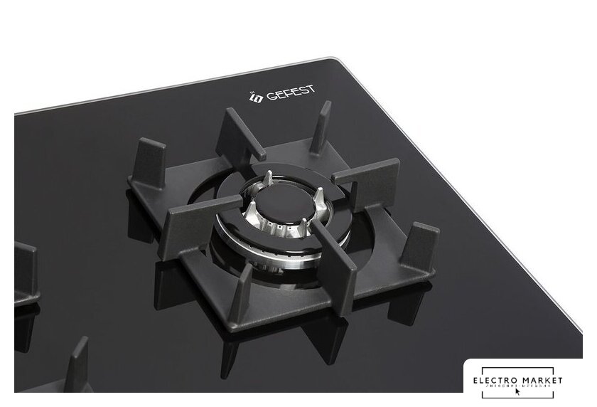 газовая на 4 конфорки, закаленное стекло, мощность: 8650 Вт, автоматический электроподжиг, газ-контроль, решетки: чугун