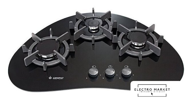 газовая на 3 конфорки, закаленное стекло, мощность: 6400 Вт, автоматический электроподжиг, газ-контроль, решетки: чугун, независимая установка, размеры (ШхГ): 45x52 см