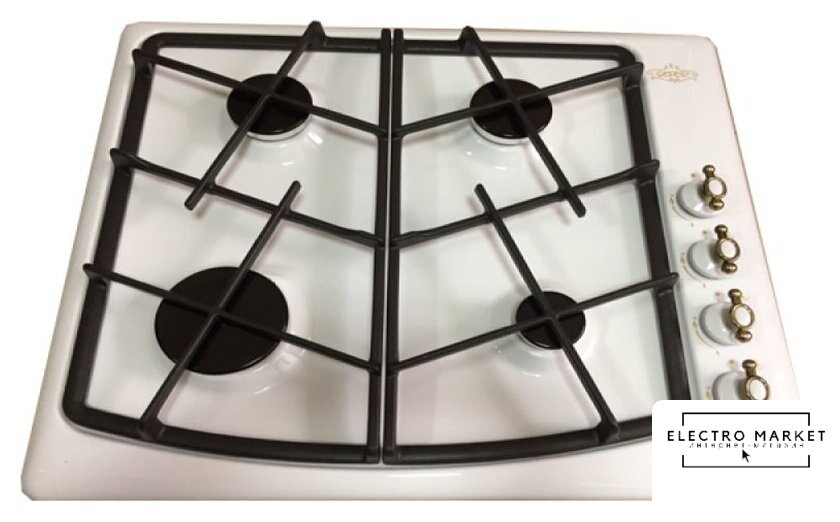 газовая на 4 конфорки, закаленное стекло, мощность: 7000 Вт, автоматический электроподжиг, газ-контроль, решетки: чугун, независимая установка, размеры (ШхГ): 58x51 см