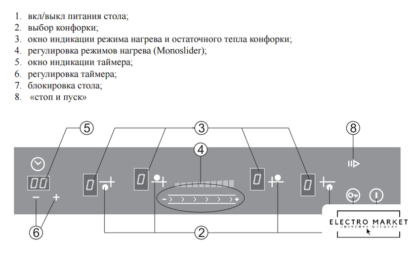 индукционная на 3 конфорки, cтеклокерамика, мощность: 5800 Вт, независимая установка, размеры (ШхГ): 45x52 см