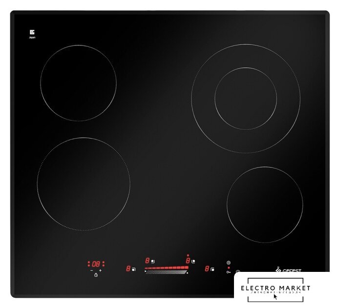 HiLight на 4 конфорки, cтеклокерамика, мощность: 6300 Вт, независимая установка, размеры (ШхГ): 60x51 см