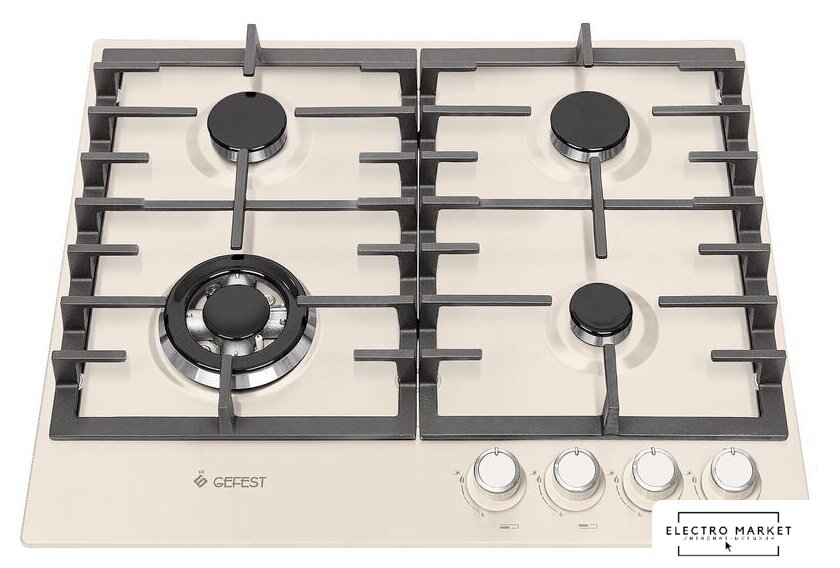 газовая на 4 конфорки, закаленное стекло, мощность: 7800 Вт, газ-контроль, решетки: чугун, независимая установка, размеры (ШхГ): 58x51 см