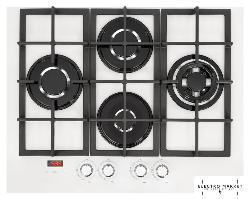 газовая на 4 конфорки, закаленное стекло, мощность: 9100 Вт, автоматический электроподжиг, газ-контроль, решетки: чугун, независимая установка, размеры (ШхГ): 59x51.5 см