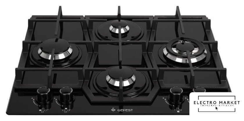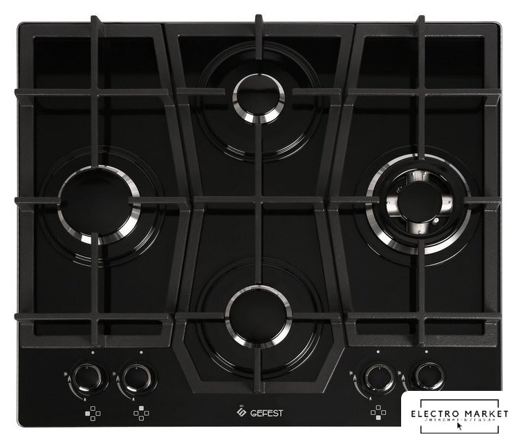 газовая на 4 конфорки, закаленное стекло, мощность: 8000 Вт, автоматический электроподжиг, газ-контроль, решетки: чугун, размеры (ШхГ): 61x52.5 см
