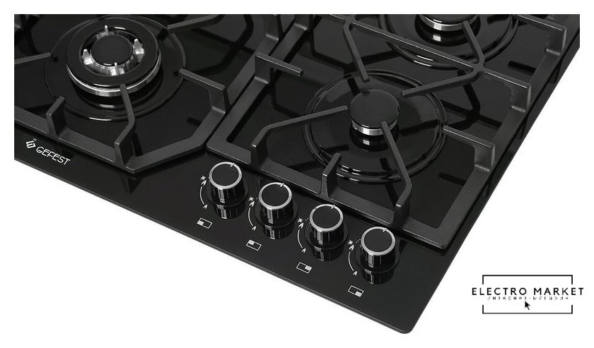 газовая на 4 конфорки, закаленное стекло, мощность: 7700 Вт, автоматический электроподжиг, газ-контроль, решетки: чугун, независимая установка, размеры (ШхГ): 60x52.5 см