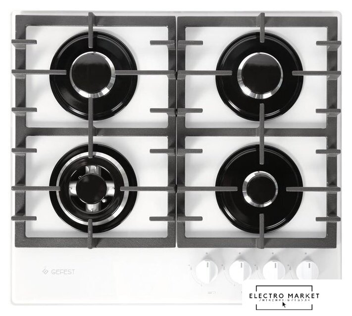 газовая на 4 конфорки, закаленное стекло, мощность: 8000 Вт, автоматический электроподжиг, газ-контроль, решетки: чугун, независимая установка, размеры (ШхГ): 60x52 см