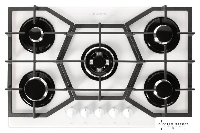 газовая на 5 конфорок, закаленное стекло, автоматический электроподжиг, газ-контроль, решетки: чугун, независимая установка, размеры (ШхГ): 80x52.5 см