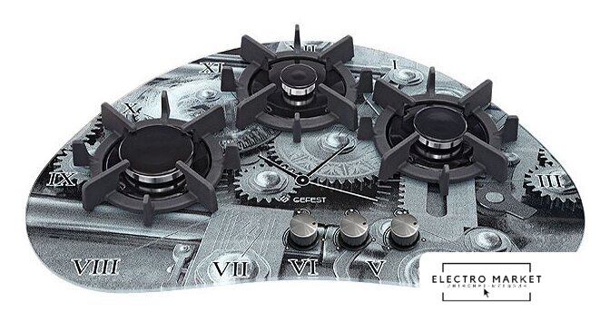 газовая на 3 конфорки, закаленное стекло, мощность: 5950 Вт, автоматический электроподжиг, газ-контроль, решетки: чугун, независимая установка, размеры (ШхГ): 45x52.5 см