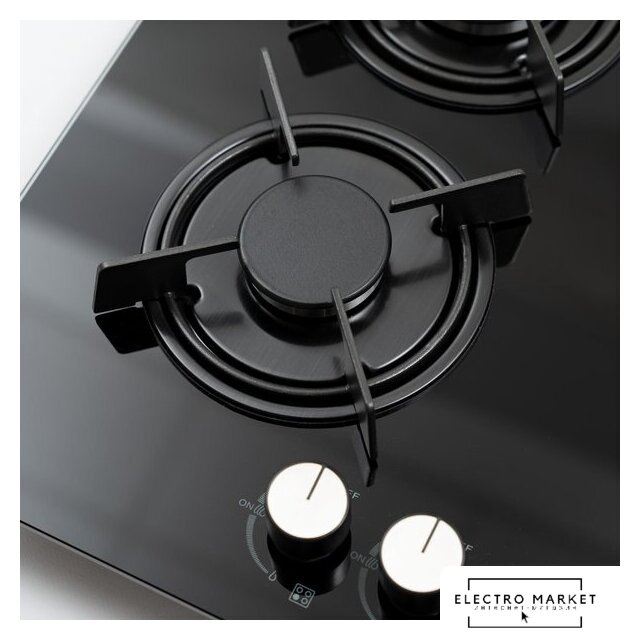 газовая на 3 конфорки, закаленное стекло, мощность: 6200 Вт, автоматический электроподжиг, газ-контроль, решетки: чугун, независимая установка, размеры (ШхГ): 60x51 см