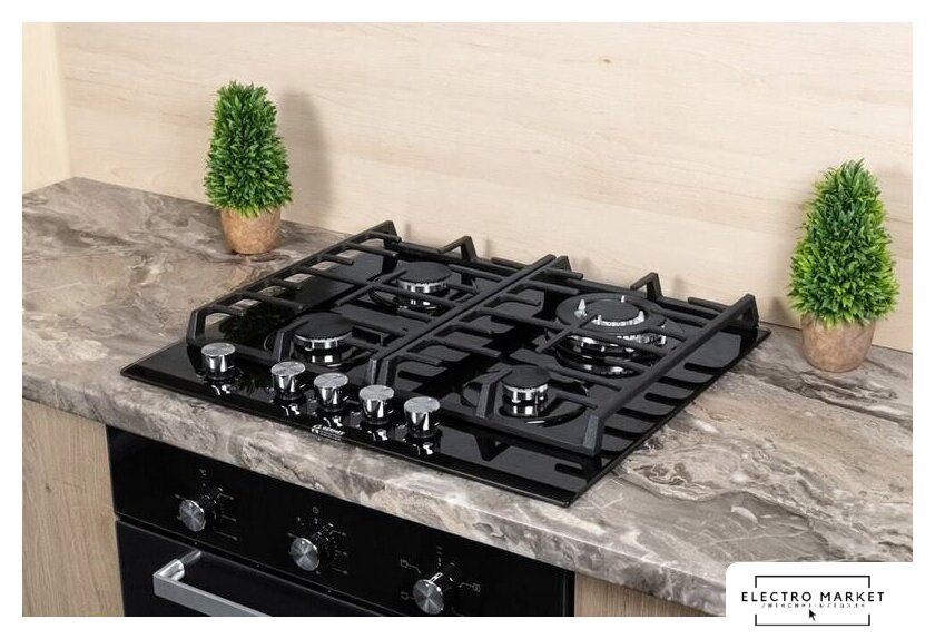 газовая на 4 конфорки, закаленное стекло, мощность: 7200 Вт, автоматический электроподжиг, газ-контроль, решетки: чугун, независимая установка, размеры (ШхГ): 59x51.5 см