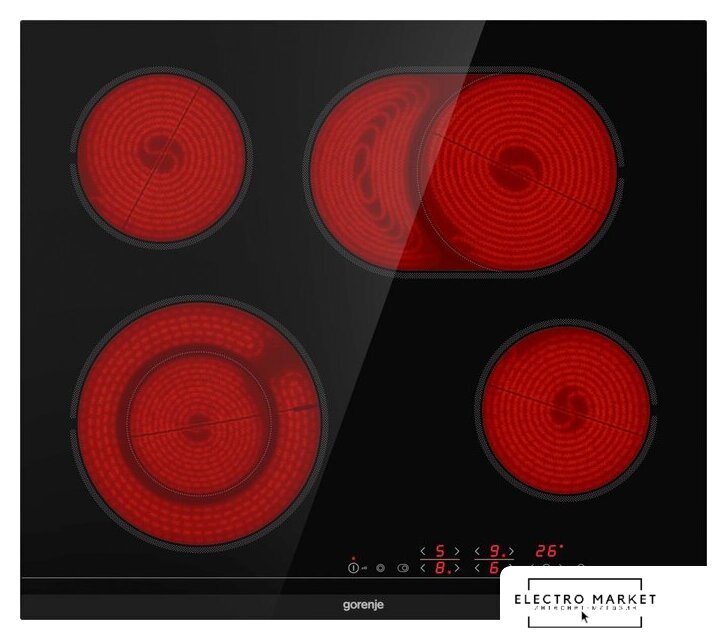 HiLight на 4 конфорки, cтеклокерамика, мощность: 6400 Вт, независимая установка, размеры (ШхГ): 59x52 см