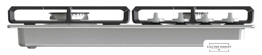 газовая на 4 конфорки, закаленное стекло, мощность: 8650 Вт, автоматический электроподжиг, газ-контроль, решетки: чугун