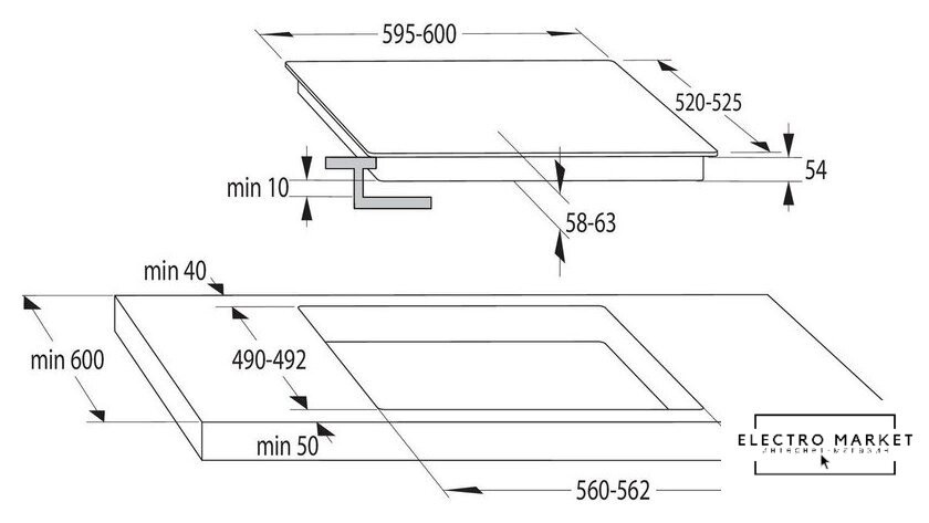 индукционная на 4 конфорки, cтеклокерамика, независимая установка, размеры (ШхГ): 59x52 см