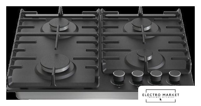 газовая на 4 конфорки, закаленное стекло, мощность: 7700 Вт, автоматический электроподжиг, газ-контроль, решетки: чугун, независимая установка, размеры (ШхГ): 67x52.5 см