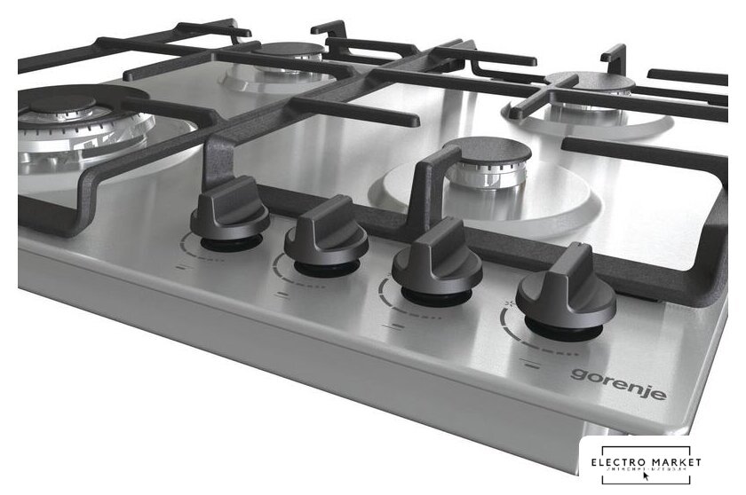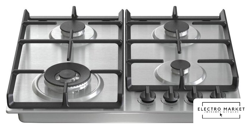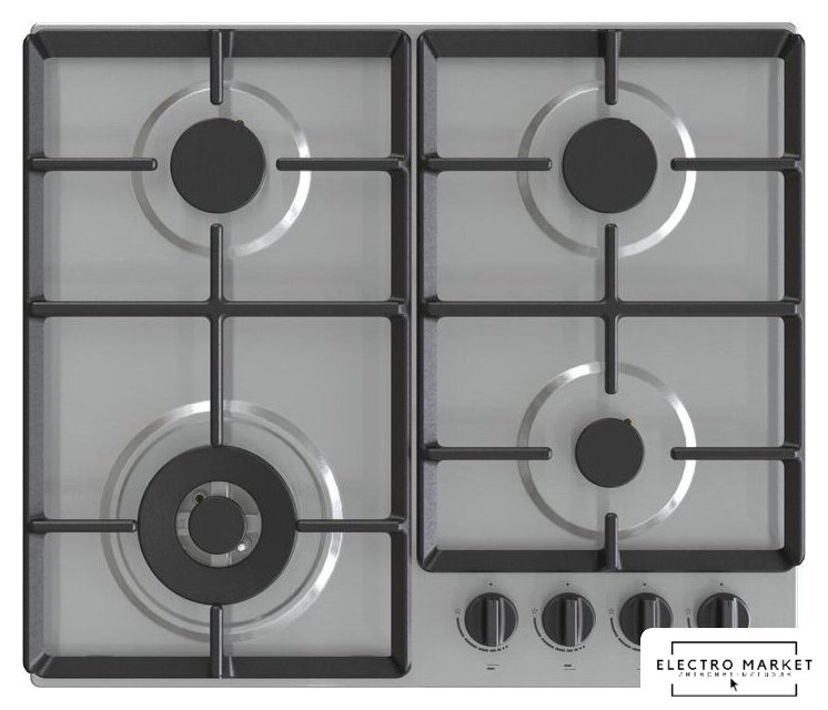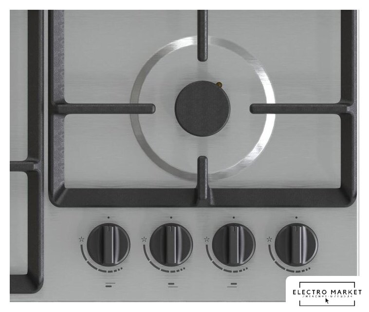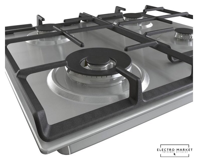 газовая на 4 конфорки, закаленное стекло, мощность: 7500 Вт, автоматический электроподжиг, газ-контроль, решетки: чугун, независимая установка