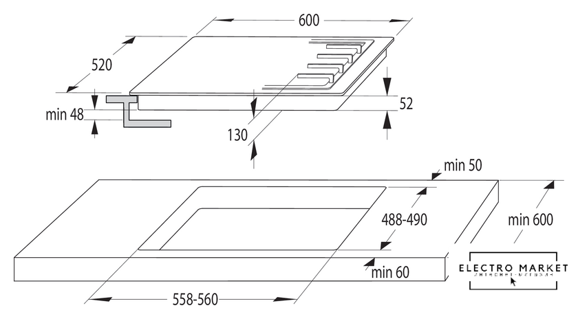 газовая на 3 конфорки, закаленное стекло, мощность: 5750 Вт, автоматический электроподжиг, газ-контроль, решетки: чугун, независимая установка, размеры (ШхГ): 45x52 см