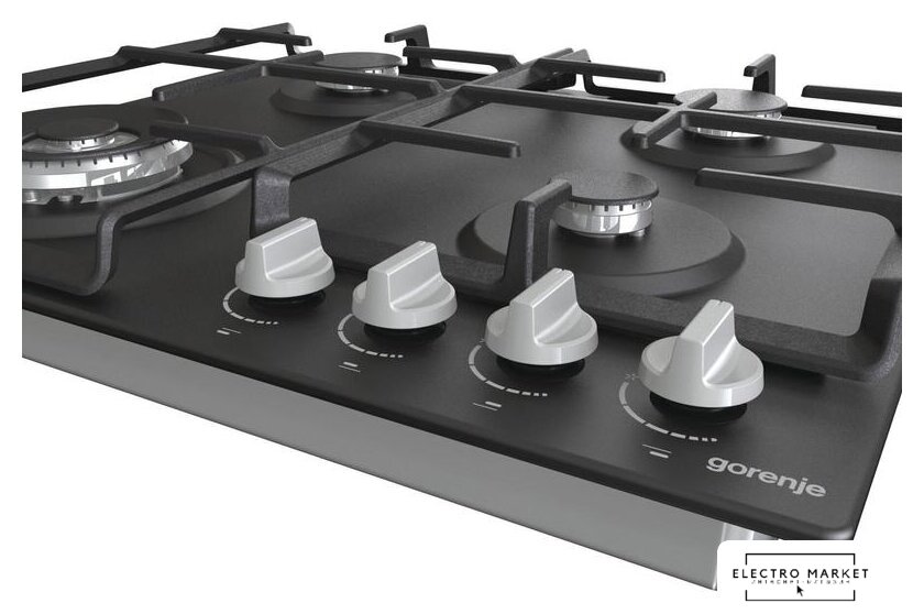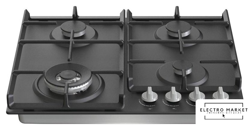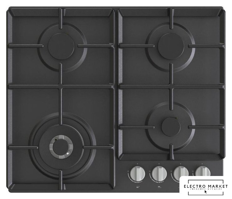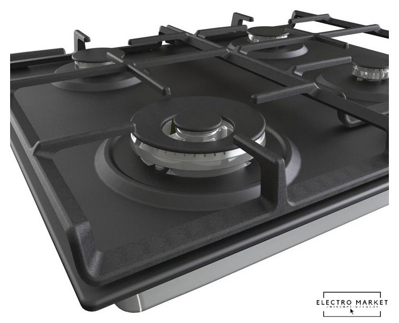 газовая на 4 конфорки, закаленное стекло, мощность: 9700 Вт, автоматический электроподжиг, газ-контроль, решетки: чугун, независимая установка, размеры (ШхГ): 67x52 см